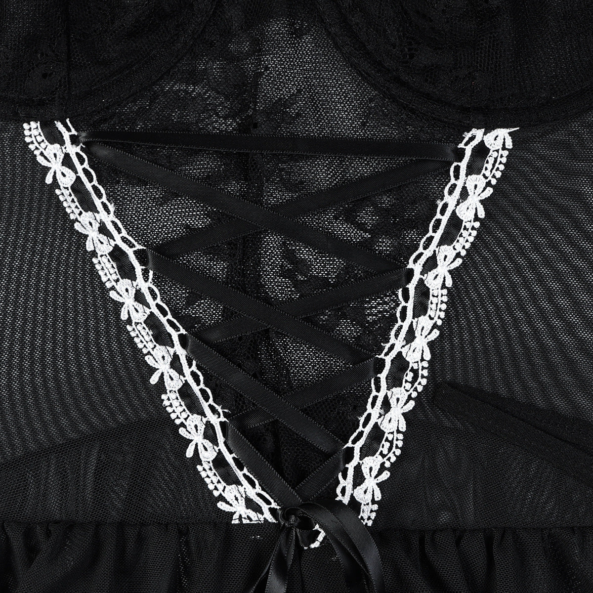 Unveil your inner fairytale in the Fairy Whispers Set – where sweet innocence meets sultry elegance. This flirty, ultra-feminine design features a sheer mesh skirt that floats like tulle, while delicate floral lace frames the bodice with a corset-inspired ribbon lace-up front that teases the eye.