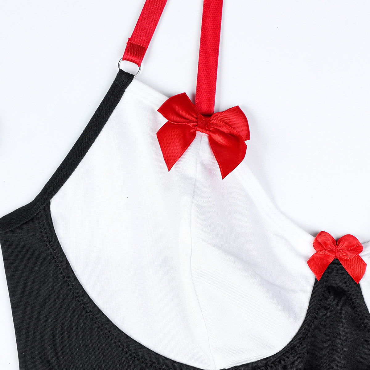 Unleash your playful side in the Tartan Tease — a cheeky schoolgirl-inspired lingerie set that turns innocent charm into undeniable seduction. This flirtatious ensemble features a bold red-and-black plaid pleated mini skirt paired with bra top. The white underwire cups contrast sharply with the black bodice, trimmed in fiery red ribbon and bows, accentuating your curves and drawing the eye to every detail.